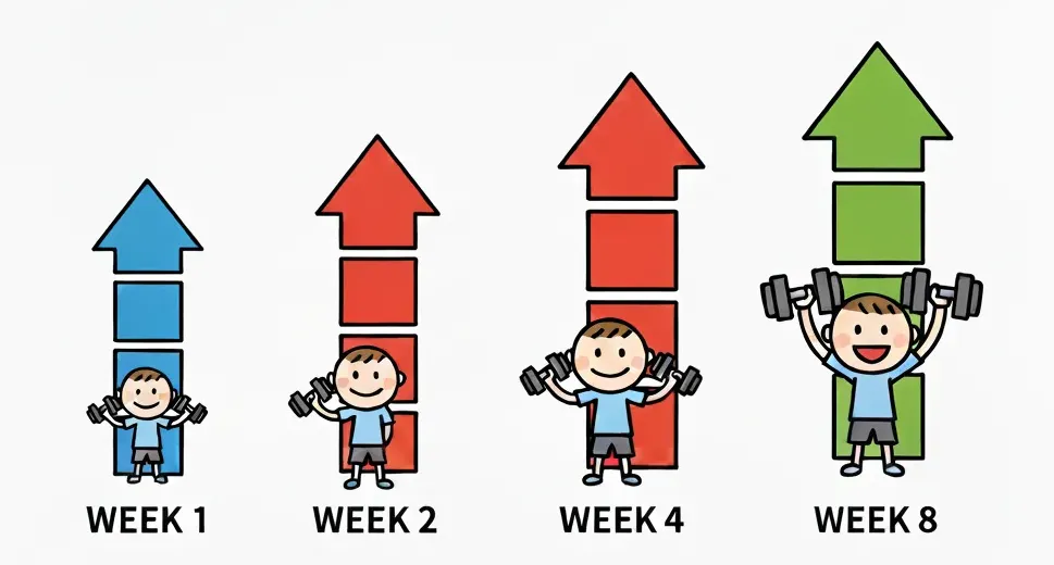 M様のトレーニングでは、「漸進性過負荷の原則(Progressive Overload Principle)」に基づき、毎回の重量、回数、インターバルを緻密に管理しました。特にベンチプレスでは、前回クリアした重量を確実に上回る負荷を段階的に設定しました。