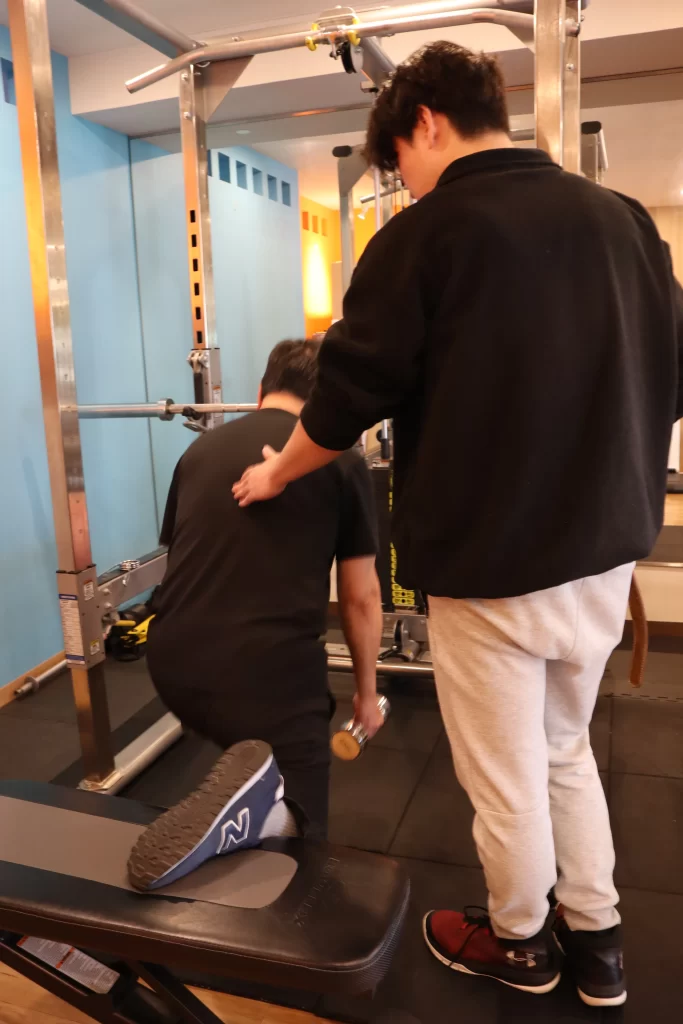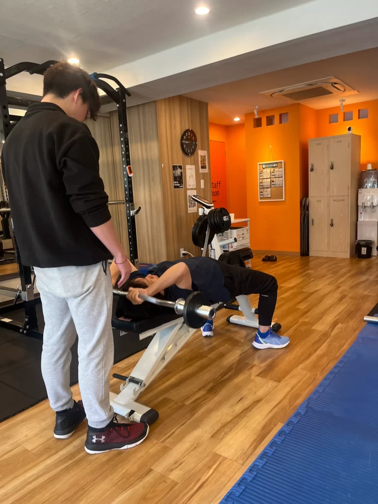 トレーナーはM様の骨格や柔軟性を分析し、「筋肉に最大限の負荷が乗り、なおかつ関節を守れる軌道」を実現するため、ボディケアによる柔軟性の調整と動画を撮影して、ミリ単位で調整を行うフォーム指導を徹底しました。これにより、「力や負荷の逃げ」を解消し、効率よく筋肉を成長させる土台を築きました。